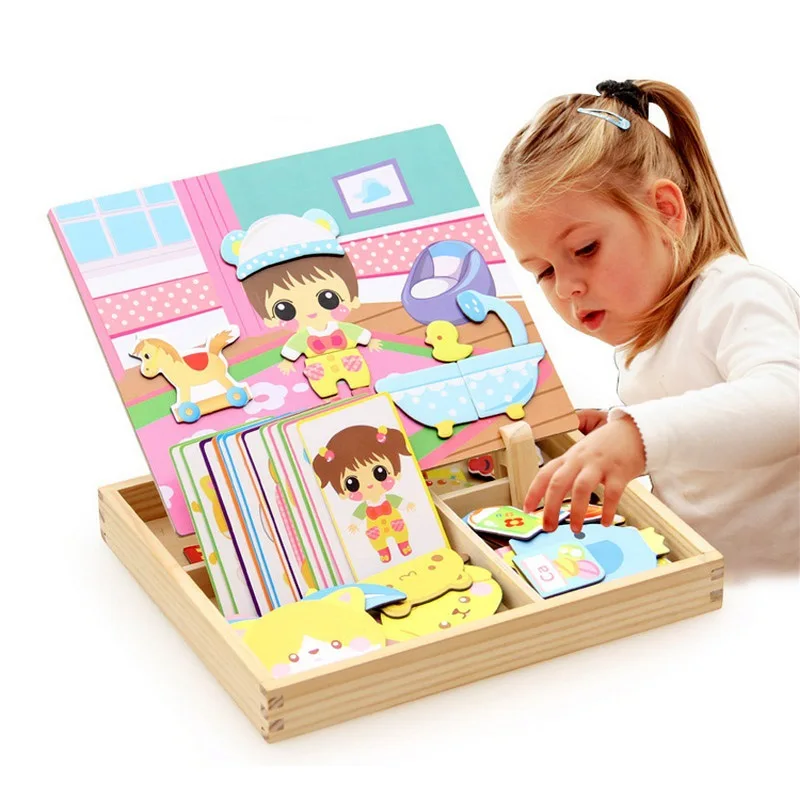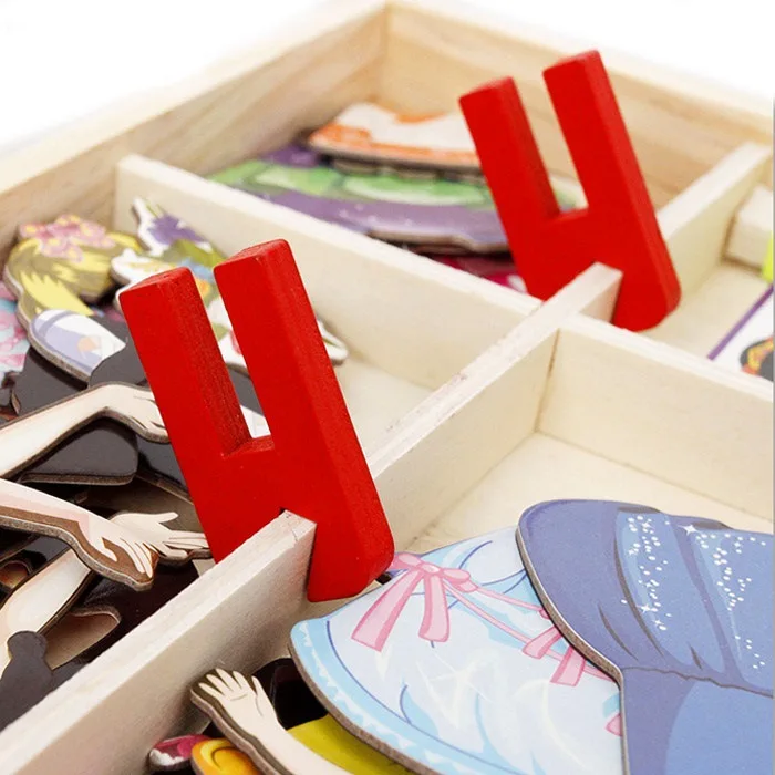 Children Wood Replaceable ci tie Toy Little Girl like Princess Doll Changing Clothes Joypin Magneti