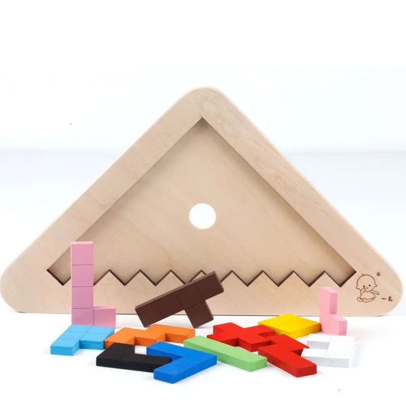 HIGH QUALITY Geometry Cognitive Tetris Wooden Tangram Brain Children Colorful Jigsaw Puzzle Magination Intellect
