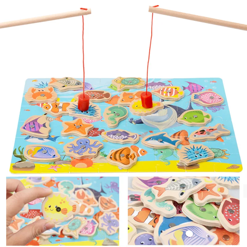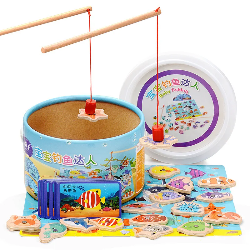 ORIGINAL Children Fishing Toys Suit Wood Magnetic Fishing Intelligence Educational Toy 1-2-3-Year-Old Boys A