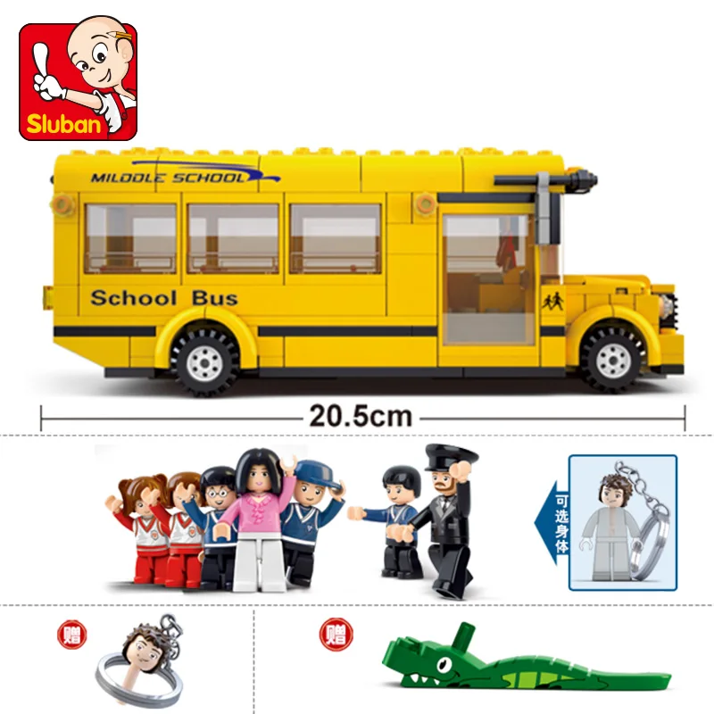 Sluban Model Building Compatible B0333 496pcs Model Building Kits Classic Toys Hobbies School Bus