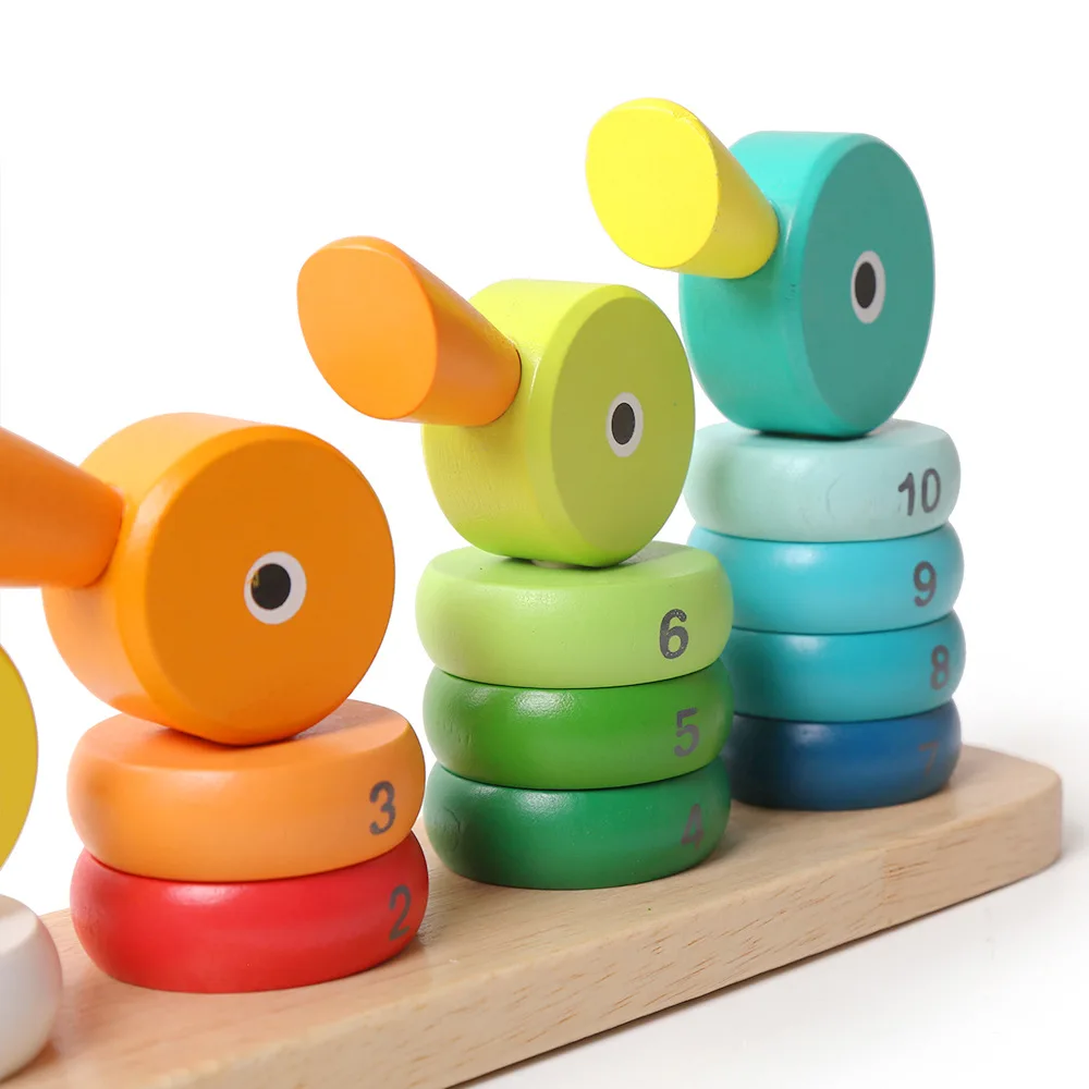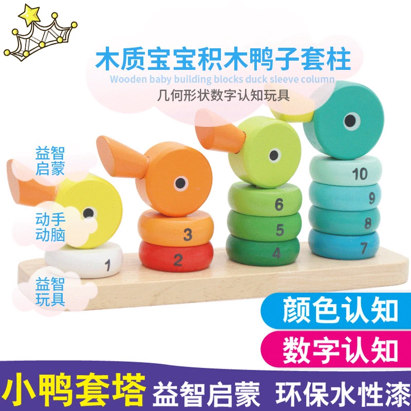HIGH QUALITY Wood Baby Building Blocks Duck Case Column Geometric Shapes with Numbers Cognitive Toy Creative Ear