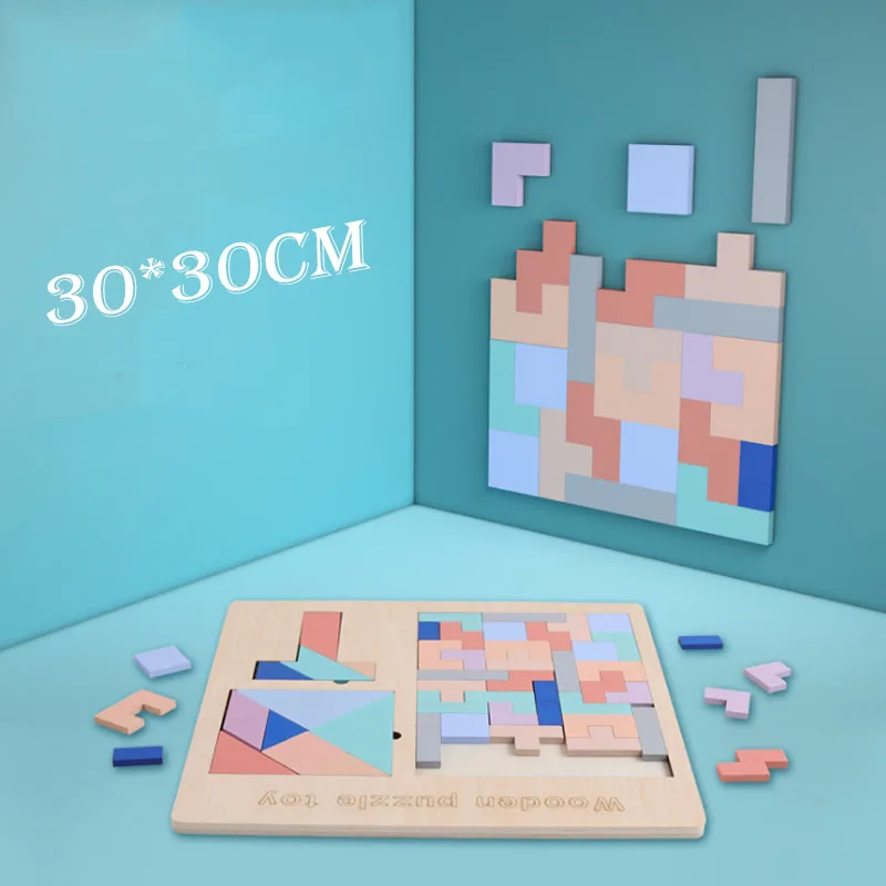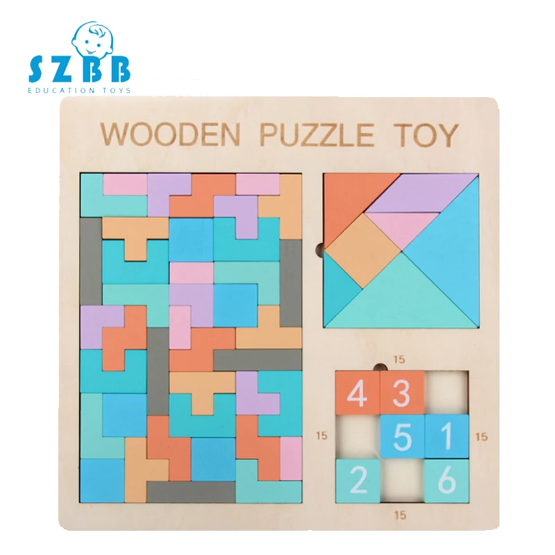 Best Quality SZ STEAM 3 in 1 Wooden Tangram Brain Teaser Puzzle Toys Tetris Game Preschool Magination Intellectu