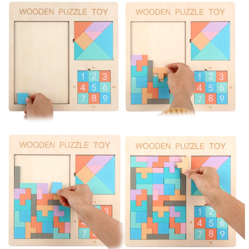 SZ STEAM 3 in 1 Wooden Tangram Brain Teaser Puzzle Toys Tetris Game Preschool Magination Intellectu