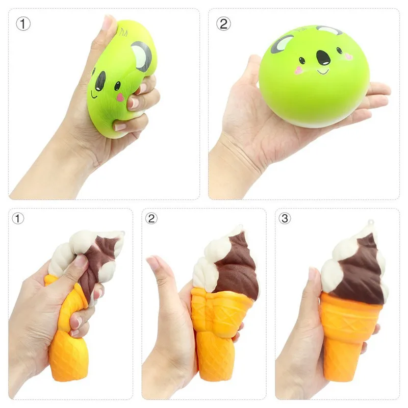 HOT Sale 5pcs Jumbo Squishies Peach Lemon Ice Cream Cone Bun French Fries Squishies Slow Rising Squeeze Kawa